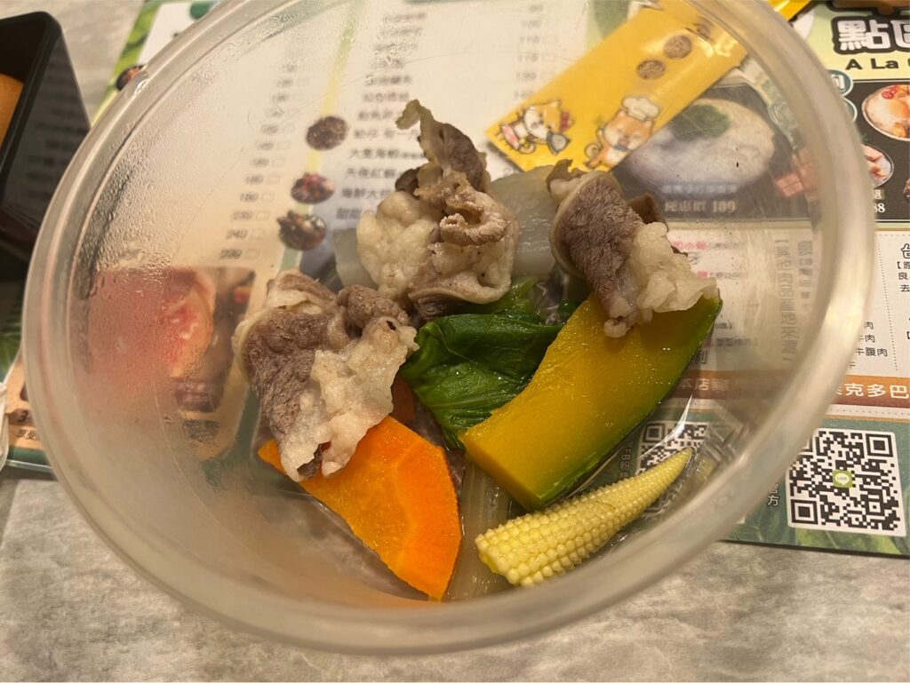 菜盤的話會隨時令,蔬菜有些許變化,中間養鍋的魚板(啵記松板燒)還會印有招牌阿柴很可愛,大多都是原型蔬果,不是那種廉價火鍋料,我很喜歡。