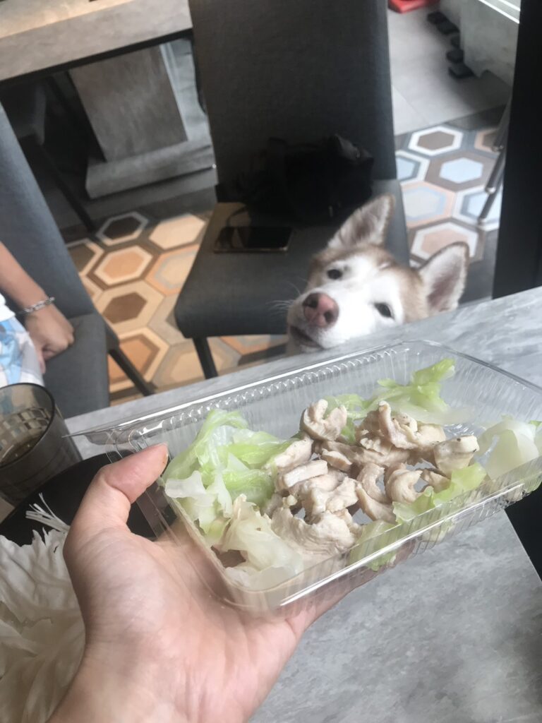然後我們在台中某間分店吃的時候,店員聽到我們要寵物碗驚訝了一下,然後就問說塑膠盒子跟紙碗可以嗎?? 真的每一家寵物友善的程度都不一樣哦!但都是很歡迎狗狗的!