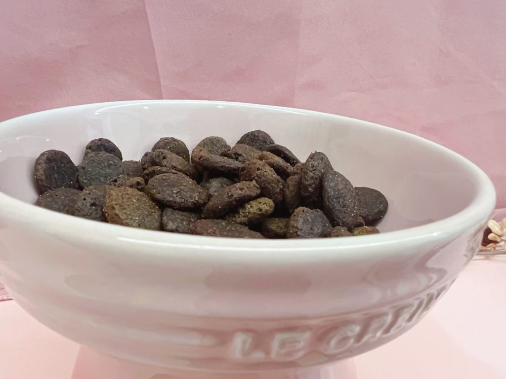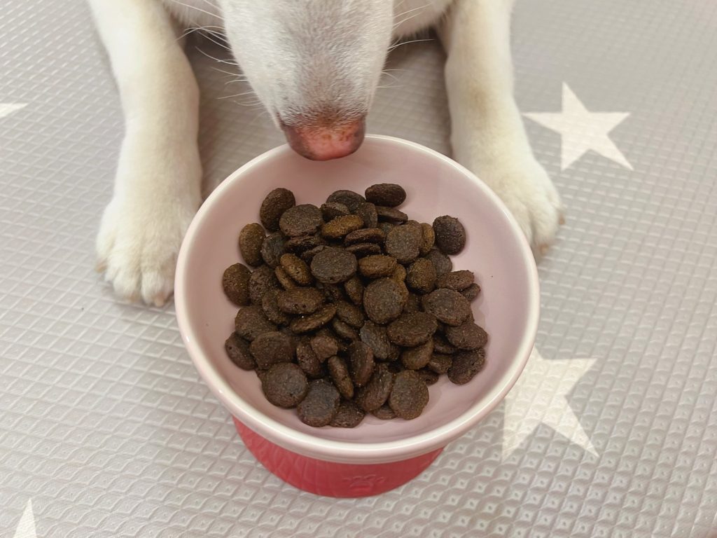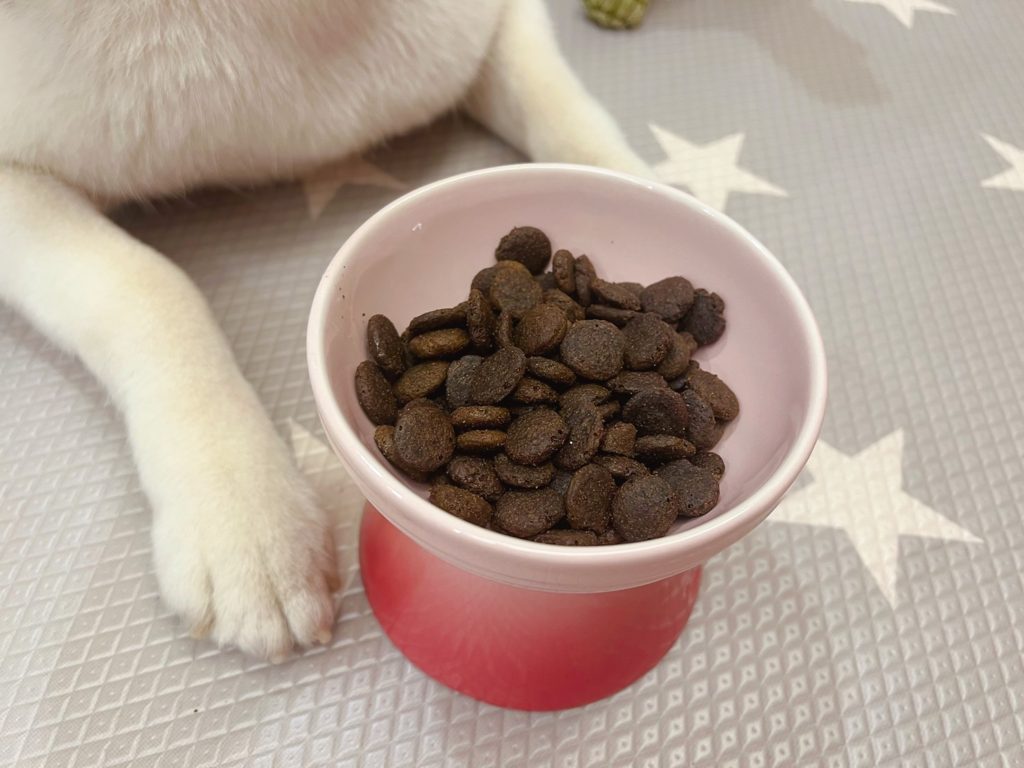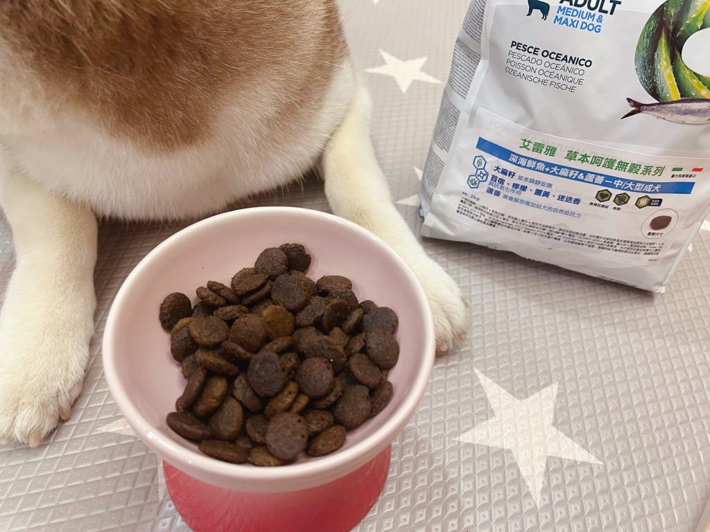 飼料大小的話,艾雷雅分得滿細的,狗狗飼料中又分為:小型幼母犬/中型幼母犬/大型幼母犬/小型成犬/中、大型成犬,不同品項都有不同的顆粒大小。太小的話盧娜容易咬一咬從嘴巴邊流出來,但太大的話對小狗狗來說又不好咬,所以可以觀察自己狗狗最合適的顆粒大小直徑喔!