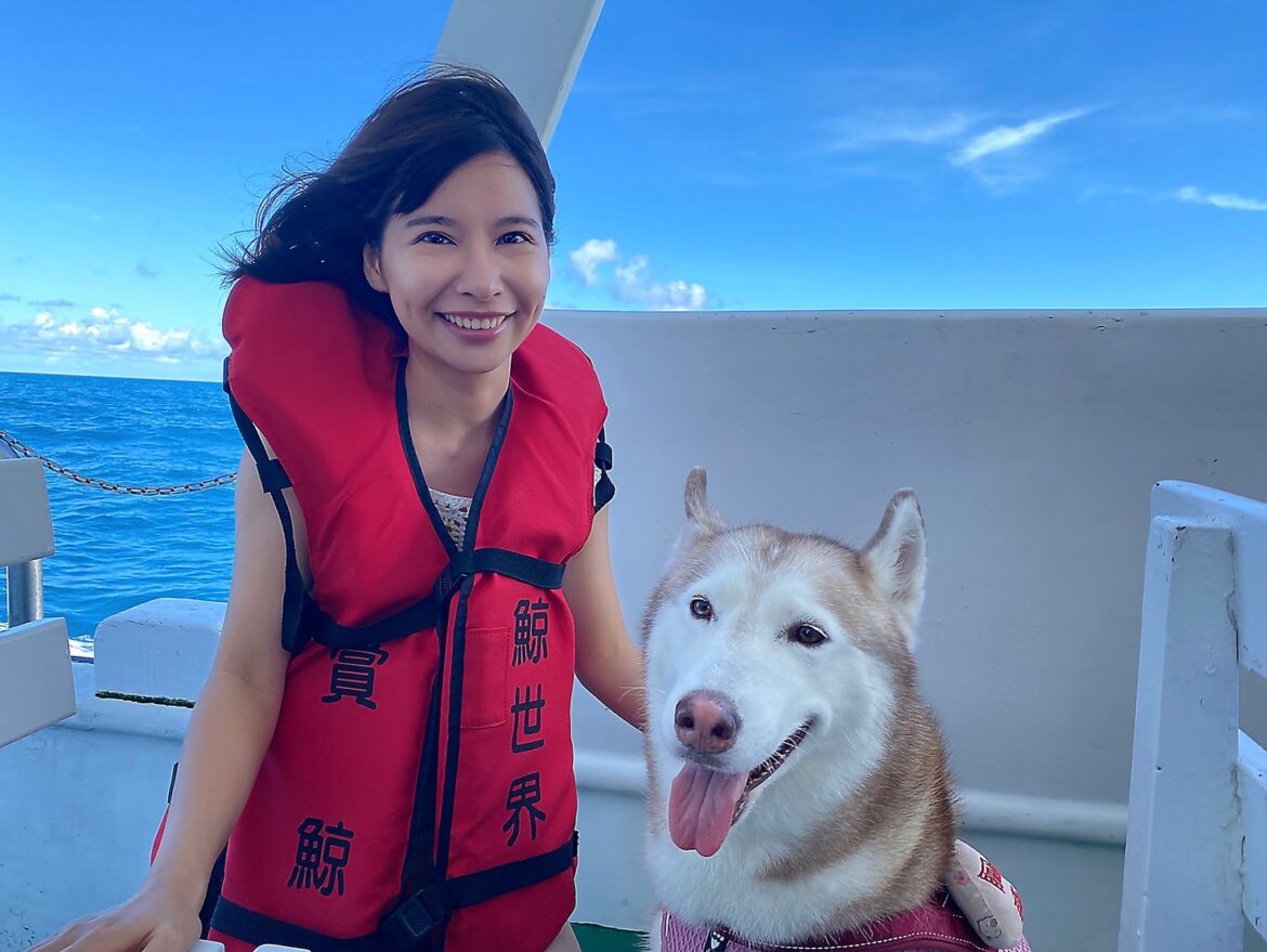 曾經查過花蓮寵物友善行程有賞鯨這項,但是我無法確保像盧娜23公斤的體型,是不是也能相同友善,又或者在海上的顛簸,狗狗能不能負荷,所以一直沒有嘗試,不過這次的三天兩夜行程,我們體驗了鯨世界賞鯨,比我們想像中得真的好太多了!我們兩人一狗都沒有暈船,甚至坐船吹著微涼海風,比在陸地上的高溫還要舒服很多!