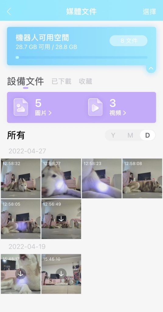 夜間模式-1080P高清紅外線鏡頭,照片、影片都可以拍、可以錄,清晰記錄生活每一刻。而且螢幕上就有攝影和錄影功能,不用在跳出去按手機螢幕錄影,在EBO的app中可以隨拍隨錄隨存,非常方便。之前我們的寵物攝影機,是用記憶卡抽取的方式,常常檔案滿了,必須轉到電腦上,多好幾個步驟,EBO能確實省下這個麻煩~容量又超大的!