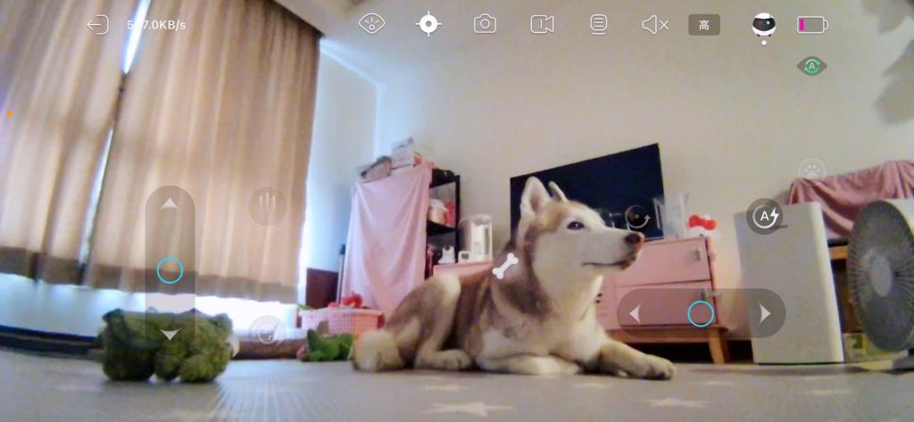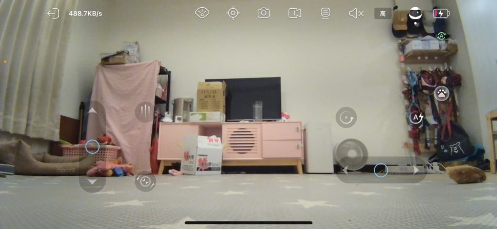 AI追蹤模式-可自動追蹤寵物或人,跟隨拍攝(追蹤圖示還可以依喜好自由選擇)。EBO會自己找到盧娜在哪裡然後跟著她拍,省得我操控一波,也是超方便的,而且像我們家晚上黃光光線比較沒那麼好,如上圖拍出來還是超級清晰的~遠端控制EBO AIR,穿梭家裡每個角落。最後如果低電量,它還能自動返回充電座待機充電。