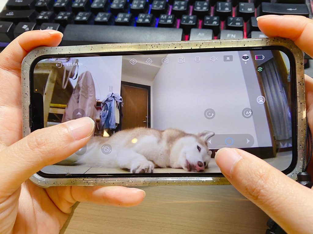 透過手機APP隨時隨地連接,並且可以同時連結多部手機(最多5台裝置連接),我和盧爸都能同時線上收看,畢竟盧娜自己在家,最擔心的就是我們兩個XDDD