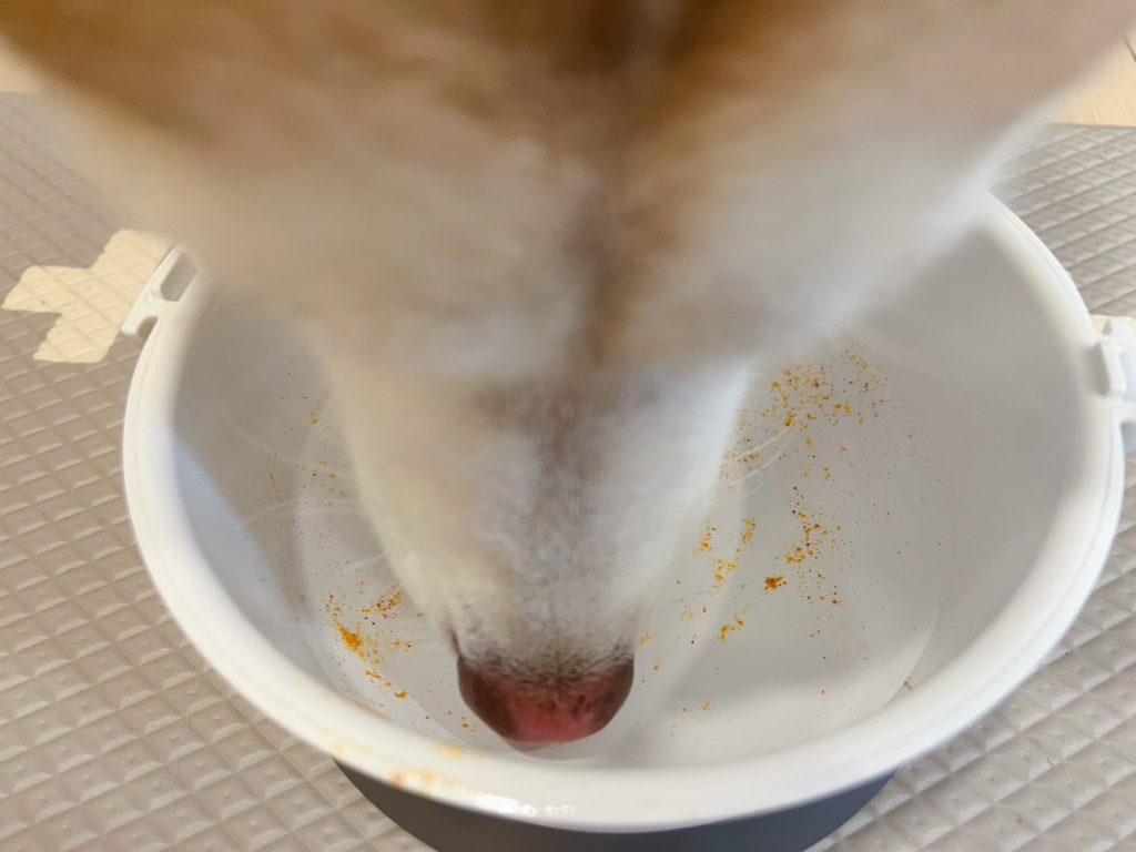 而且除了有沾保健粉的飼料吃完之外,我發現她連地上掉下來的粉末也會舔乾淨,像個勤儉持家的貼心小媳婦一樣,讓我不用再整理一次XD,粉末中玫瑰果微酸天然帶甜的味道,適口性通過娜娜考驗。