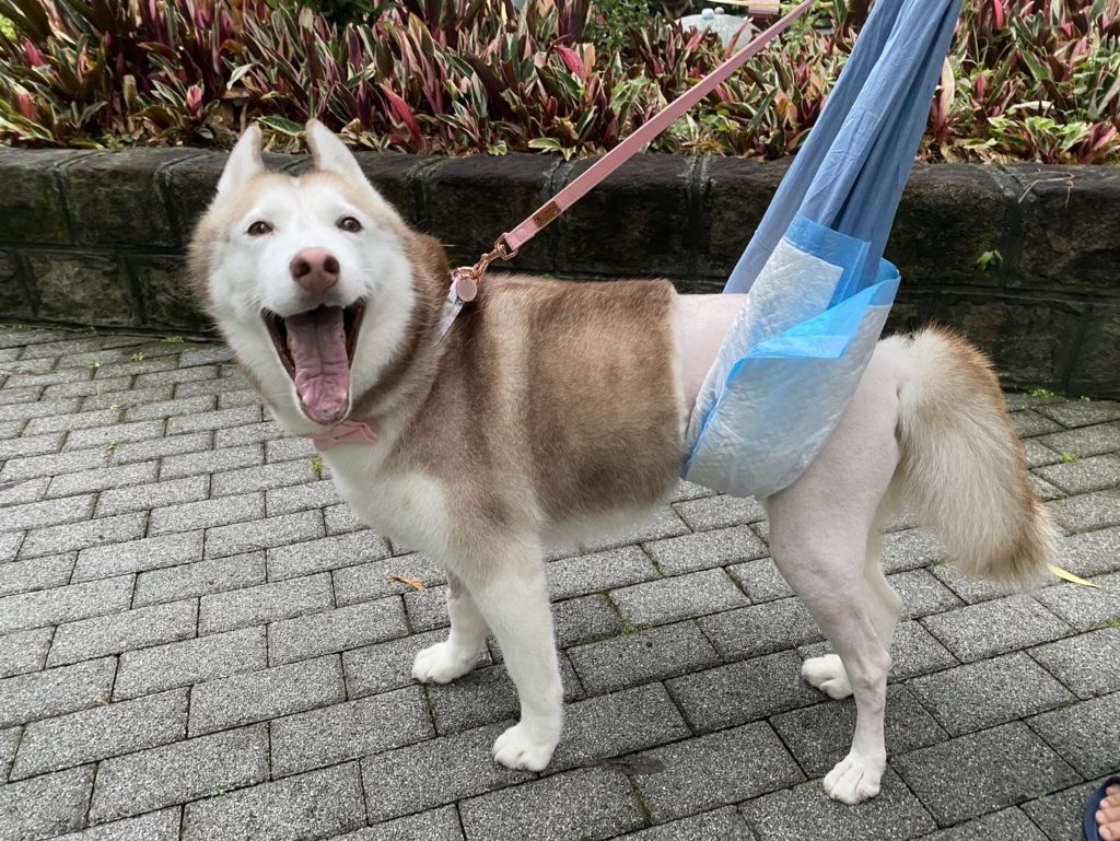 本文開始前先自介一下盧娜,五歲半哈士奇,一歲半時剛領養,因此不知購買犬舍是否合法,懷疑是近親繁殖的關係,在四歲就發現有兩腳韌帶斷裂、伴隨退化性關節炎的狀況,玩得太興奮走路會跛腳,長時間坐臥後,起身也會較為困難,腳跟無法點地。