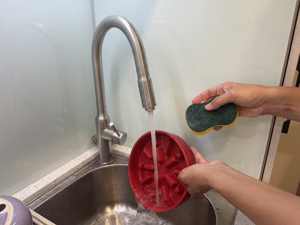 再來是兩隻的狗碗,因為雪球的口水真的很多,加上我都給他們用慢食碗吃飯,食物殘渣常常卡在縫隙很難清洗,如果不努力洗又會有一種口水生物膜的感覺,黏黏滑滑的,味道也不太友善。