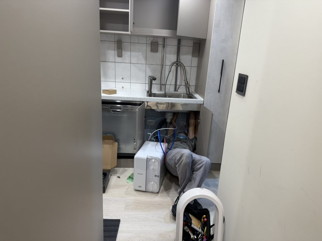 安裝的部份我們是外行,請凱撒專業的安裝人員來處理,因為我們家先裝了淨水器,所以讓安裝人員搞了好一會兒工夫XDD