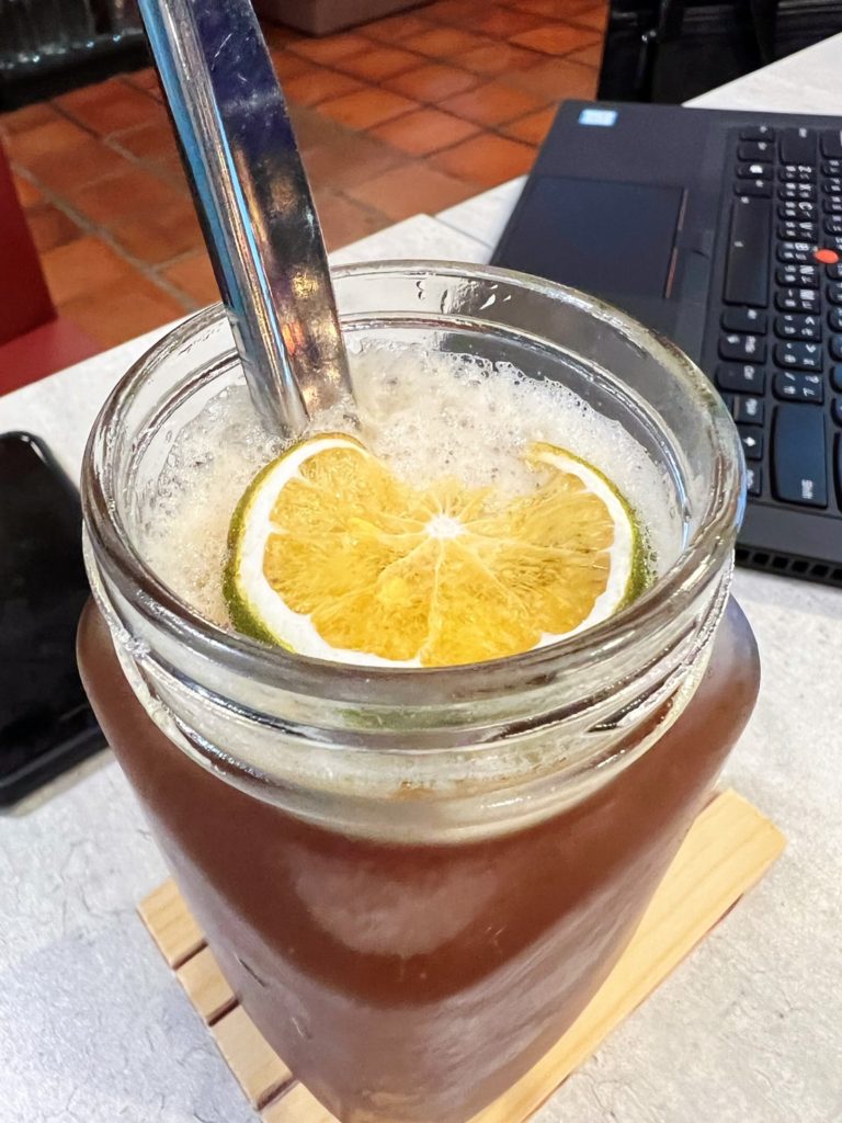 葡萄柚果汁氣泡飲,這杯是我喝的,解膩又清涼,帶完兩隻哈士奇喝一杯剛好消消心火XD