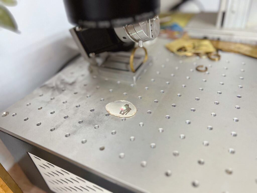 選好了之後,就準備在銀片上雷射出盧娜的圖案了,超級酷的,不用幾分鐘的時間盧娜就出現了!