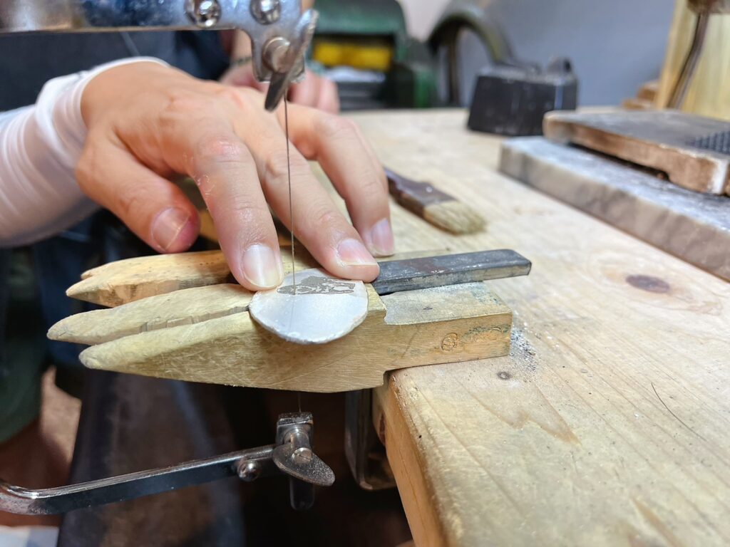 接下來就要準備鋸出盧娜的邊緣了,老師任何步驟都會手把手教學帶領一次,所以真的不用擔心太困難,全程老師都陪同在旁,原本提心吊膽怕鋸錯、然後整塊銀片就毀了的心情,也能安心一些。