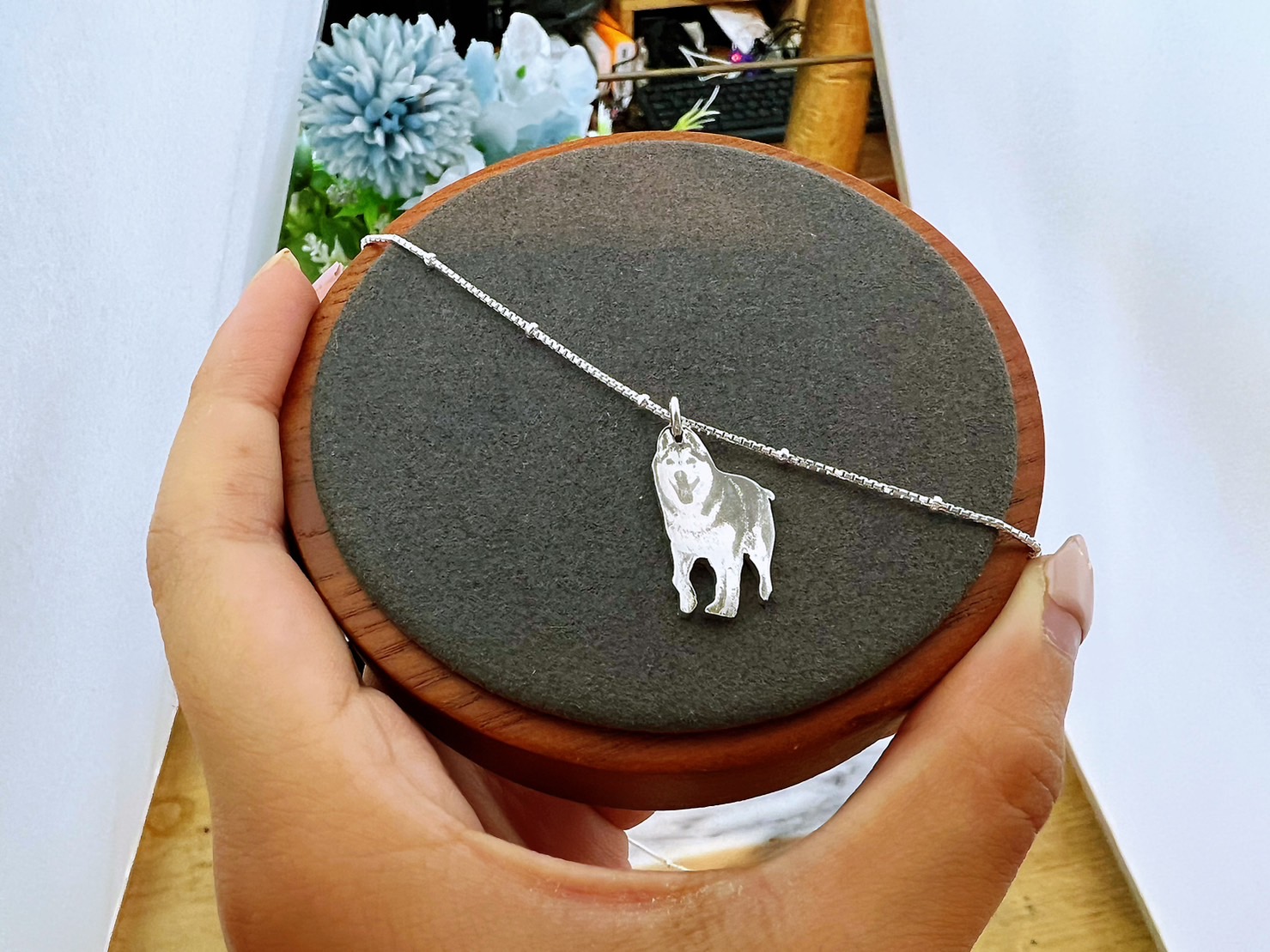我對這趟體驗打了滿分!因為是盧娜的照片圖案,所以當然加分加到爆,自己家的狗狗哪有不可愛的道理,這樣雷射客製化的項鍊,不一定在每家金工都有,所以我真的覺得很幸運!出了大門後立刻就戴在脖子上了哈哈。