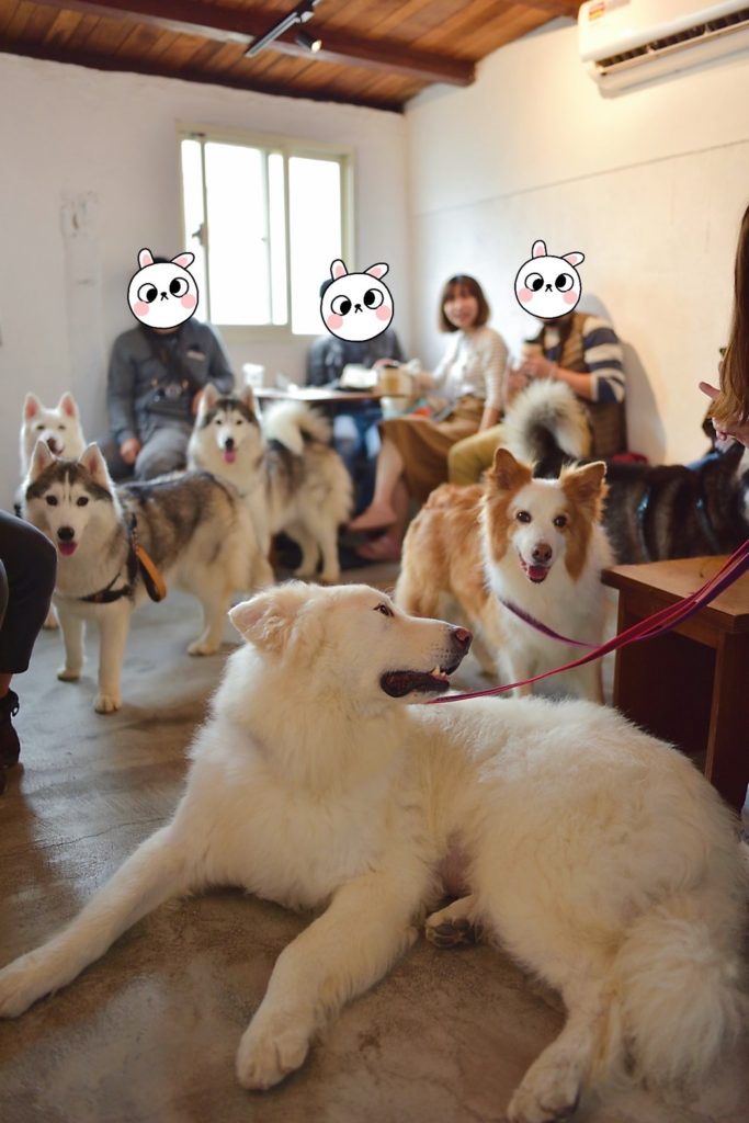 坐進去後瞬間滿位XDDD 很多客人都會走到門口問問能不能摸狗狗,然後一直拍照,那種感覺很像我們被關在動物園XD