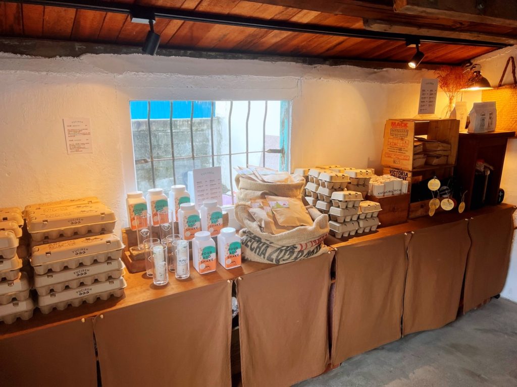魚刺人自家的雞蛋糕粉、有機鹹檸檬、帆布袋等等,就像個小文創市集一樣,精緻排好,每個細節都充滿文青風格融入在老宅中。