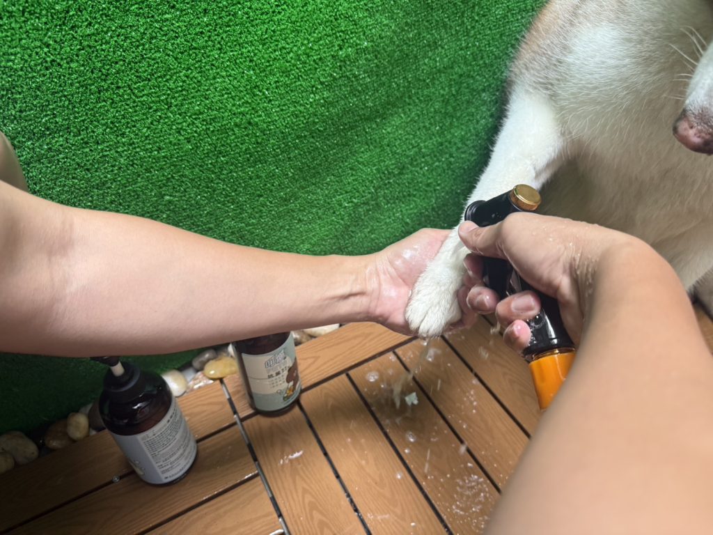 除了噴霧以外,叮寧竟然也出了洗毛精!!防蚊是做到出門前的防護,洗毛精是把回家後該做的事情補足了,一整套流程剛剛好!因為姊弟回來容易沾上落葉、灰塵、草汁,甚至雪球還會踩到自己的便便(扶額),所以我們洗毛精也都放在浴室和陽台以備不時之需。