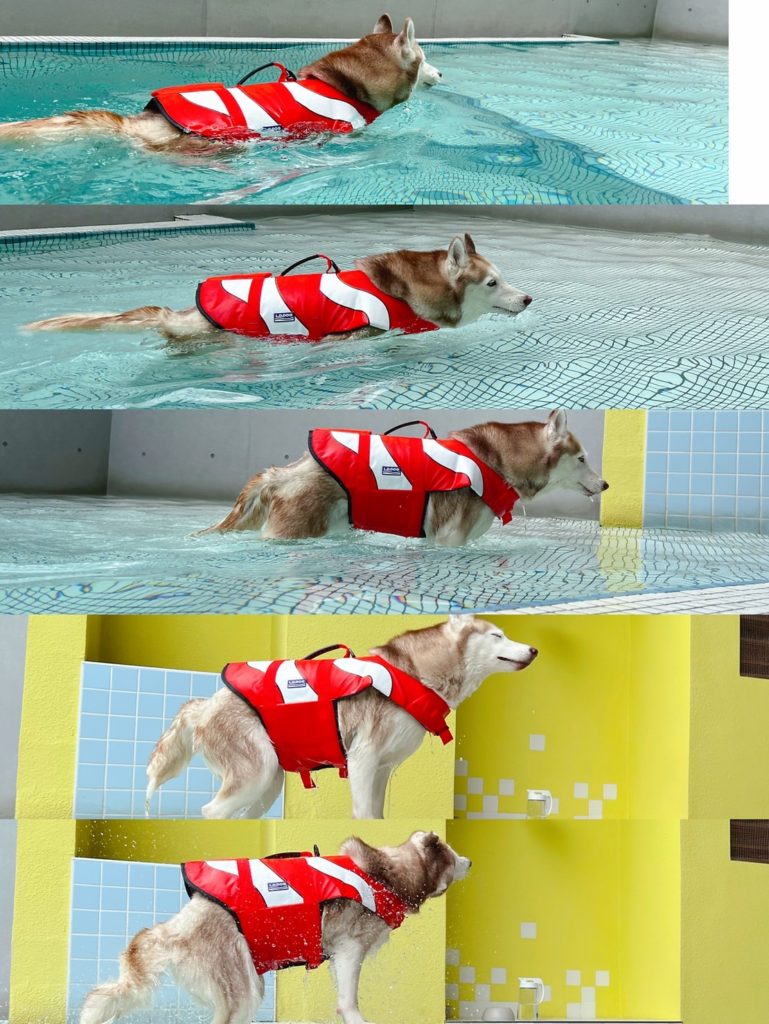 不過淋浴間參觀歸參觀,我是直接泳池旁邊開門,把盧娜交給老早就預約好的寵物美容師XDDD 人類大解放!!!! 第一次帶盧娜游完泳這麼優雅,不用擔心噴到全身都是毛又溼答答!!!