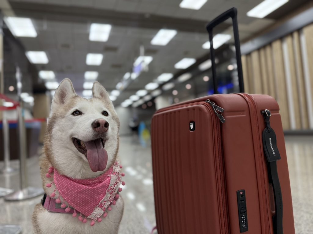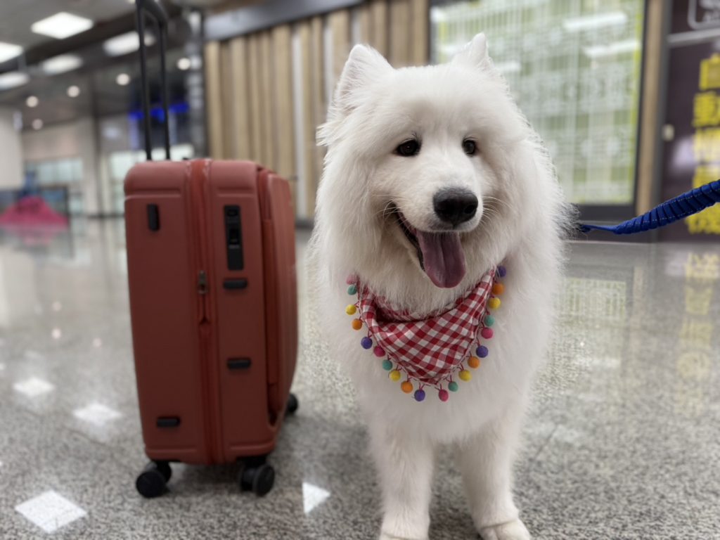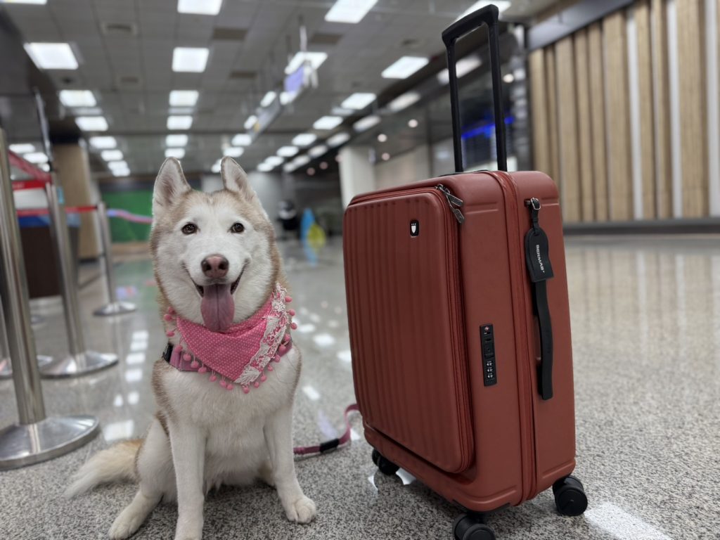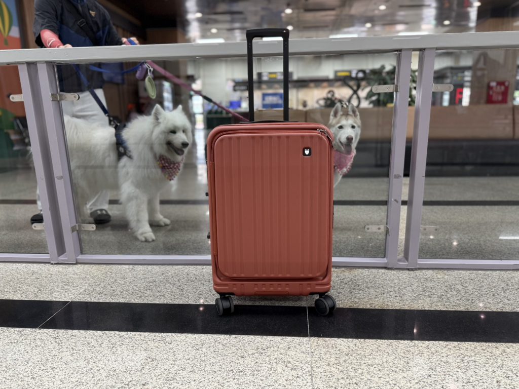 這款行李箱小細節超多,有專屬的 Apple Airtag 收納口袋,還有可以掛袋子、吊牌的小掛鉤;側腳座附掛勾也很實用,購物袋直接勾著走路超方便,連盧娜的水碗都可以勾了就走,國內旅遊也方便。