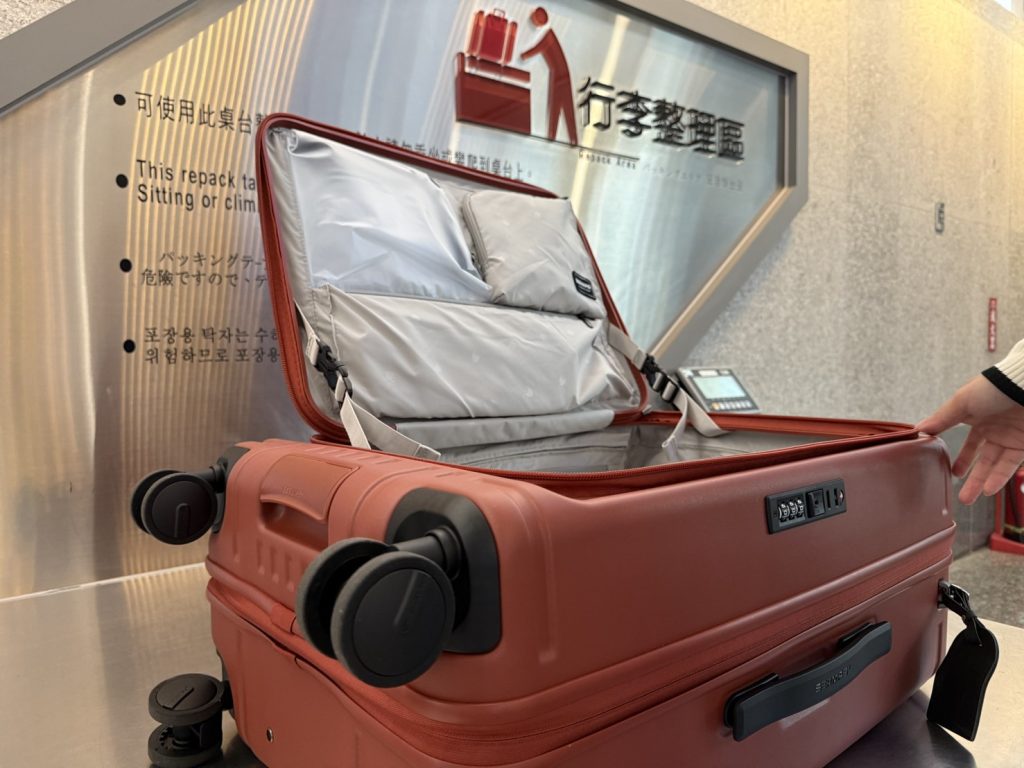 這款行李箱是上掀設計,相當適合我們這種30幾歲就需要吃銀杏的人(?),東西帶得很雜亂又會一直臨時想拿東西,尤其以前住日本的小旅館,行李箱每次都要全開攤成一張床那麼大,現在半邊就能開取,很省空間也不怕亂翻。