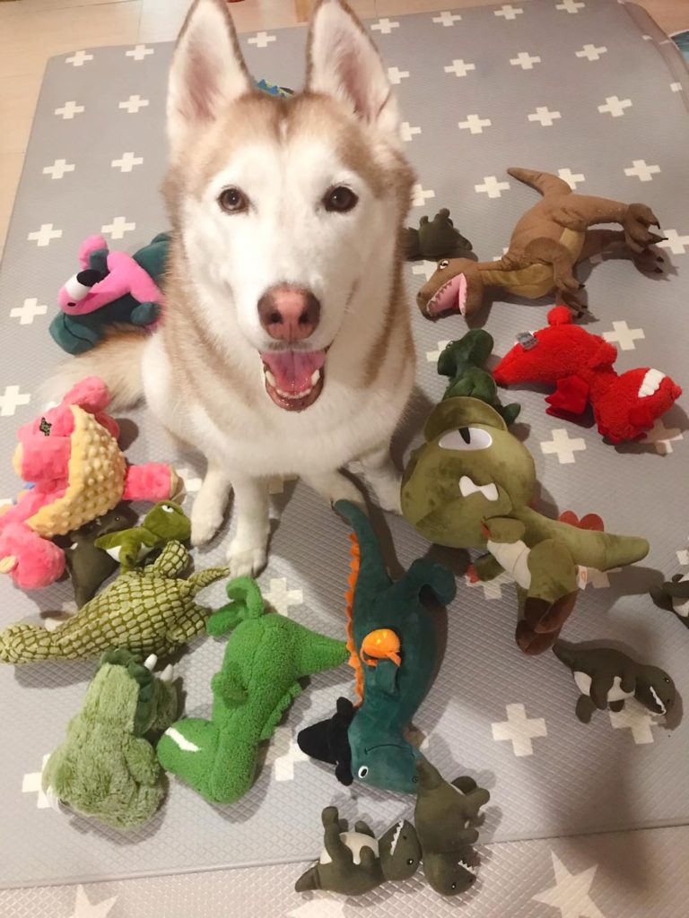 另外盧娜的玩具收藏就是一堆她珍愛的龍龍,每隻龍龍丟來丟去、咬來咬去,都被盧娜的口水沾滿全身,如果好一陣子沒清理,濃郁的味道也會漸漸散發出來,這時候又要派出噴霧給他好好噴一下了。