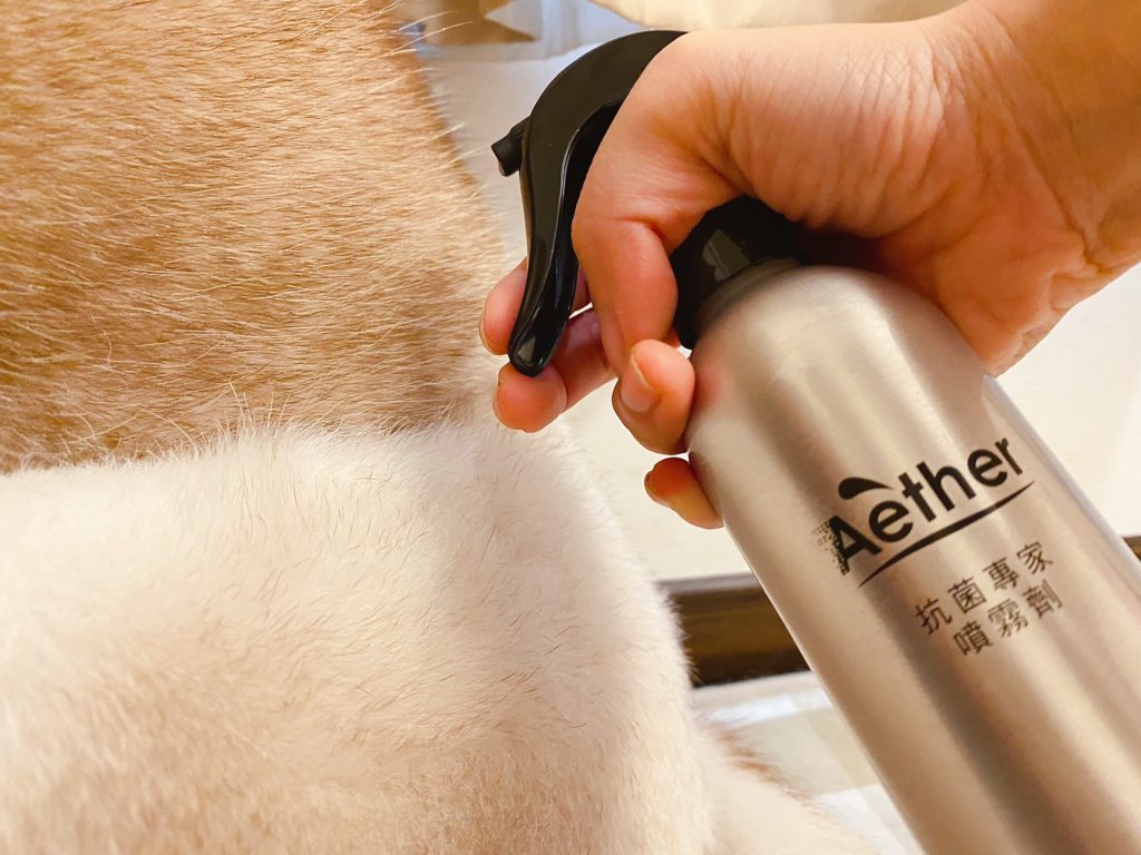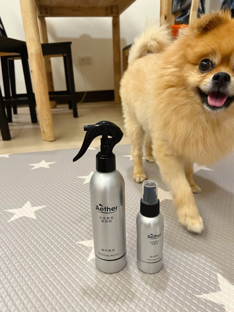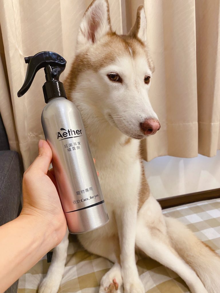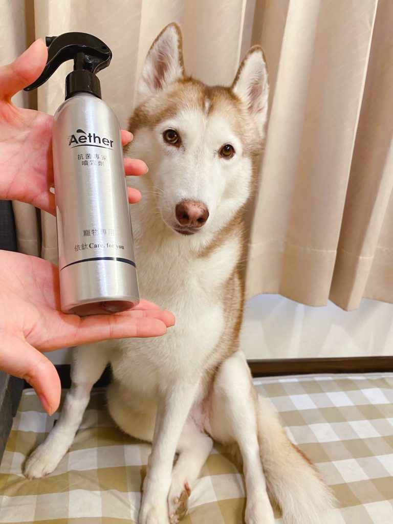 說真的,哈士奇和柴犬都算是狗味比較輕微的狗狗,就算一個月沒洗澡,味道也不會太重;但是因為十月份,鄰居家的博美碰碰來住我們家一段時間,我發現家裡味道變得滿濃郁的XDD,有養狗的人應該都能懂那種感覺,就要說臭嘛~~也不是!就是比較重的味道,一回家很明顯可以分辨出來是狗味,所以對沒有養狗的人來說,這味道應該是超濃郁的,所以這陣子我都狂噴這款【Aether 依鈦抗菌專家】。