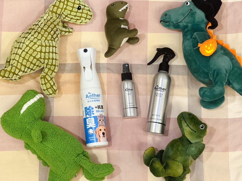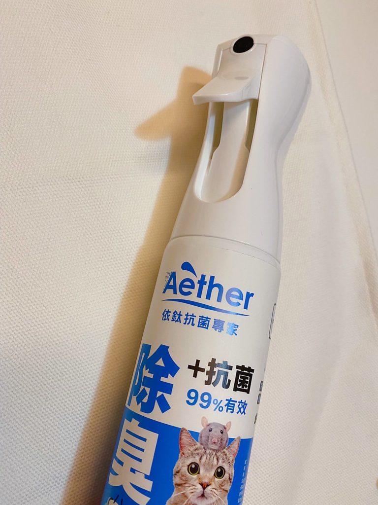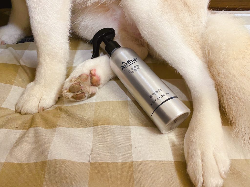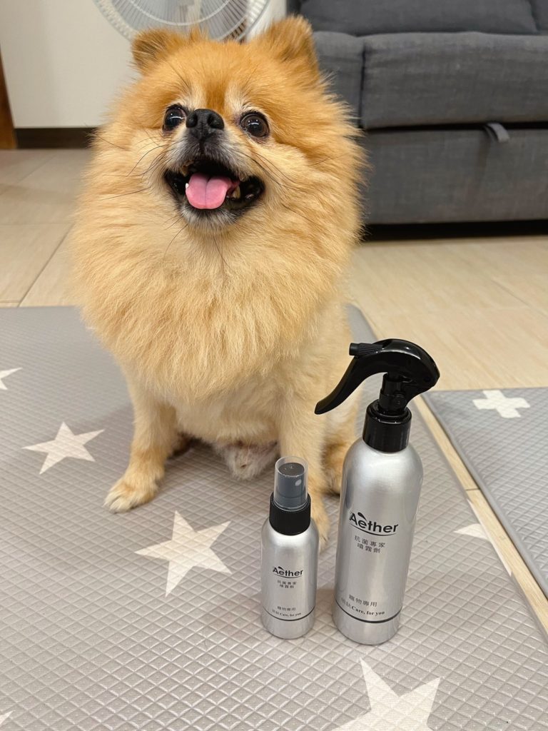 說真的,哈士奇和柴犬都算是狗味比較輕微的狗狗,就算一個月沒洗澡,味道也不會太重;但是因為十月份,鄰居家的博美碰碰來住我們家一段時間,我發現家裡味道變得滿濃郁的XDD,有養狗的人應該都能懂那種感覺,就要說臭嘛~~也不是!就是比較重的味道,一回家很明顯可以分辨出來是狗味,所以對沒有養狗的人來說,這味道應該是超濃郁的,所以這陣子我都狂噴這款【Aether 依鈦抗菌專家】。