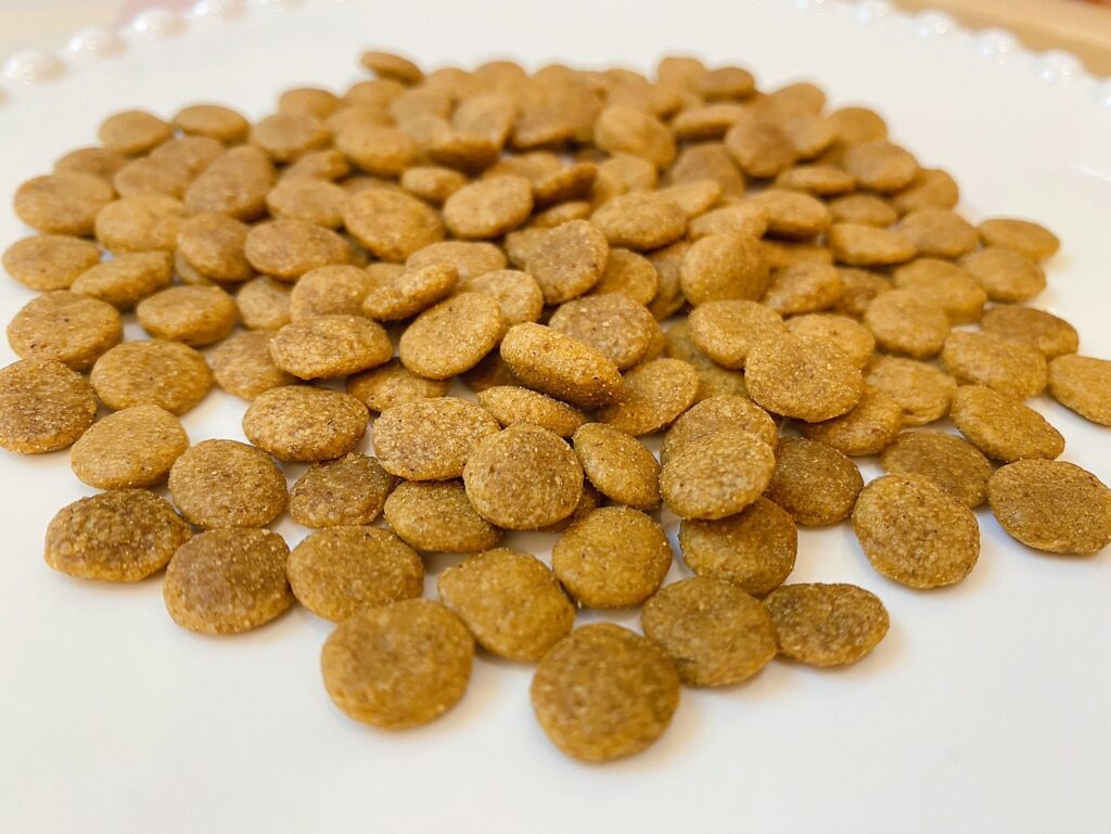 飼料味道有淡淡香氣,外表不會有油耗感,外層掉下的細微粉末也較少,不含穀物和麩質,沒有過分濃郁的香氣卻能適口性很好,也讓盧娜吃飯,碗裡不會剩下,尤其這款配方大大降低碳水化合物的攝取,脂肪含量只有7%,又能放心開心吃、又能維持體重和體態,便是我們家追求的快樂XDDD